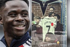 体育资讯03月08日讯 阿森纳客场2-1淘汰曼斯菲尔德,晋级足总杯8强。赛后萨卡在社交媒体上晒出了一张照片,照片中有对手球迷举着一件7号球衣,上面印有“萨卡垃圾”的字样。