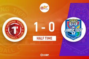 上半场补时3分钟。半场战罢,辽宁铁人1-0天津津门虎。