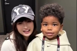 体育资讯3月31日讯 此前,杨瀚森女友在社媒晒出自己抱着利拉德儿子在场边转圈圈的动态。