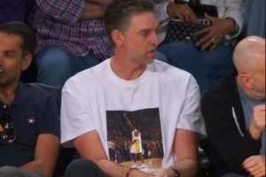 兄弟情深!大加索尔身穿科比81分纪念T恤现场观战湖人!