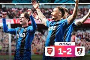 体育资讯4月11日讯 英超第32轮,伯恩茅斯客场2-1击败阿森纳,据统计这是伯恩茅斯在英超历史上首次在客场连胜阿森纳。