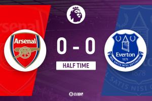 半场-阿森纳0-0埃弗顿 卡拉菲奥里极限解围麦克尼尔中柱廷伯伤退