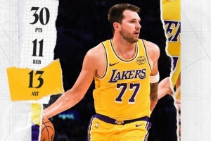 赛后,湖人官方晒出东契奇的数据海报,配文写道:“三双,外加绝杀!东契奇,今晚属于你!?”